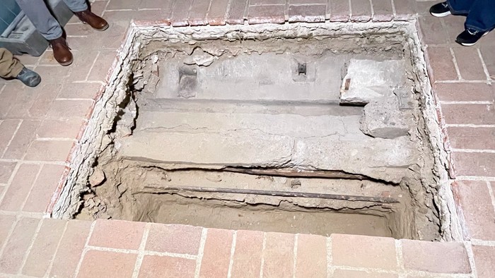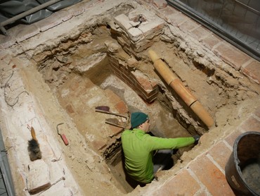 Verschiedene Bodenöffnungen zeigen uns eine vergangene Zeitschicht! So kommt eine alte Fußbodenheizung zum Vorschein, die bis 1942 mit Warmluft geholfen hat, die Kirche zu temperieren. Wir suchen zur Zeit gute Standorte für die neuen Bodenöffnungen der Fußbodenstationen, die zukünftig - als Teil des Heizungskonzepts - für angenehme Temperaturen sorgen sollen. Und sind sehr froh, dass die Archäologen der Hansestadt untersuchen und prüfen, welche Zeitschichten im Bodendenkmal uns viel über die Geschichte der Kirche und der Stadt erzählen.