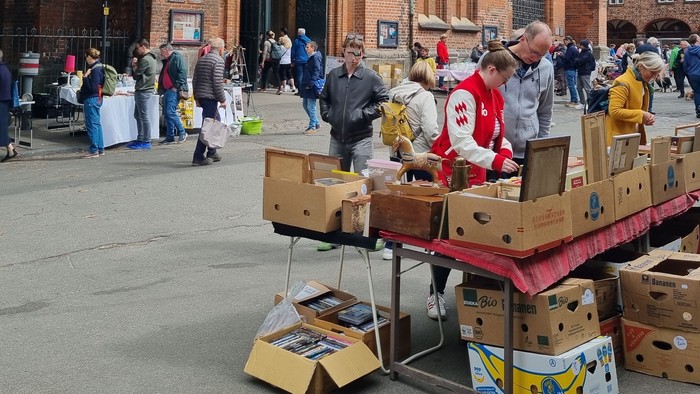 Flohmarkt zwischen Marien-Kirche und Rathaus.