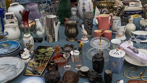 Kunst und Kitsch, Haushalt und Kleidung, Spielzeug, Bücher und vieles mehr erwarten die Besucher an der Südseite der Kirche.