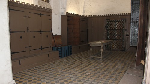 Die aus dem 14. Jahrhundert stammende „Schatzkammer“ des Rates liegt über der Bürgermeisterkapelle und überstand unbeschadet den Bombenanagriff von 1942.