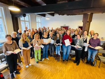 Foto oben im Text: Hier proben die Kantorei St. Jakobi und der Domchor im Gemeindesaal von St. Jakobi – der künftigen Probenstätte der neuen Stadtkantorei. (Foto: Steffi Niemann)