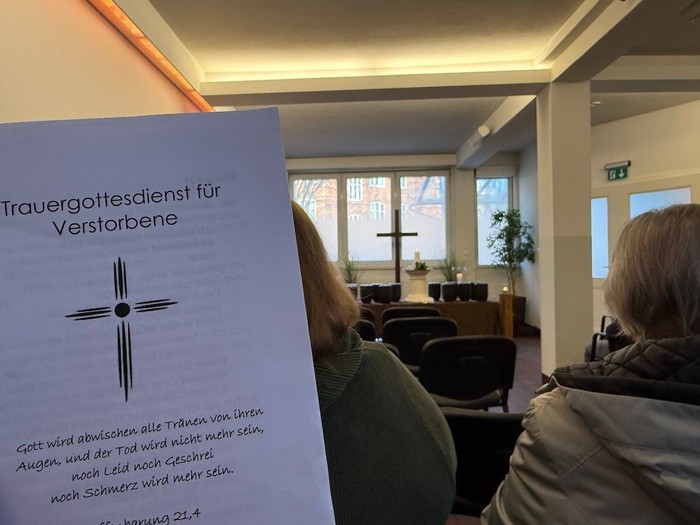 Foto mitten im Text: Der Trauergottesdienst für Verstorbene ist öffentlich und wird an jedem letzten Donnerstag im Monat gehalten.
