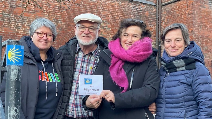 Bild: V. li.: Regina Musa, Peter Lubb, Sabine Rietman und Bärbel Reichelt freuen sich auf die neuen Pilgertreffen als Winterangebot für alle Pilger-Begeisterten und die, die es noch werden wollen.