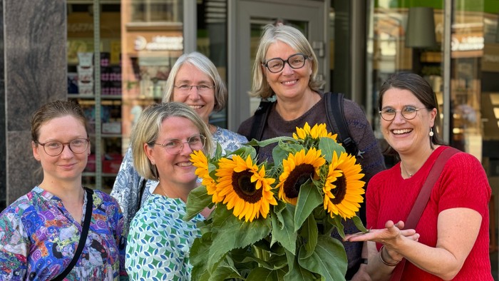 Fünf Pastorinnen aus der Nordkirche machten sich vom 05. bis 07. September 2025 auf den Weg nach Riga, auf Einladung des Verbandes der Lettischen Lutherischen Theologinnen anlässlich zweier bedeutender Jubiläen (50 Jahre Frauenordination und 30 Jahre Verband der Lettischen Lutherischen Theologinnen) Auf dem Bild (v.l.n.r.) Daria Szkudlińska, Eva Stein, Anne Freudenberg-Klopp, Anja Möller und Margrit Wegner.